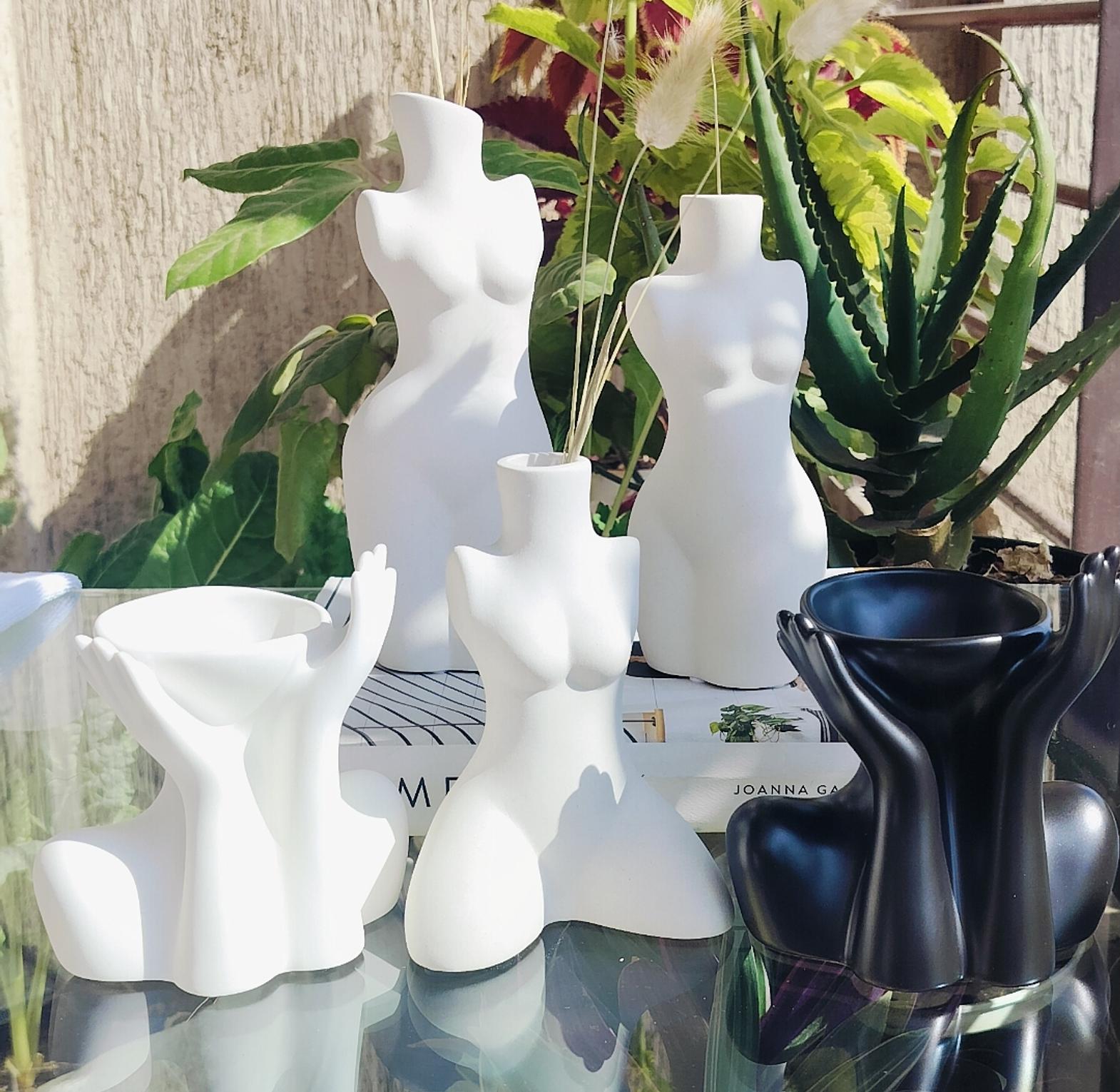 • Available Names:  small lady posing, small lady kneeling , hands on chin white, hands on chin black , female shoulder vase , small lady straight , abstract brown