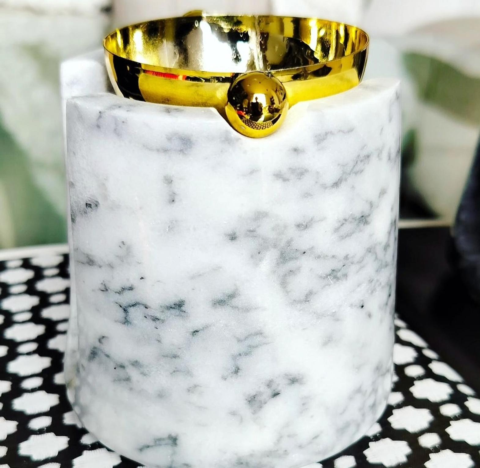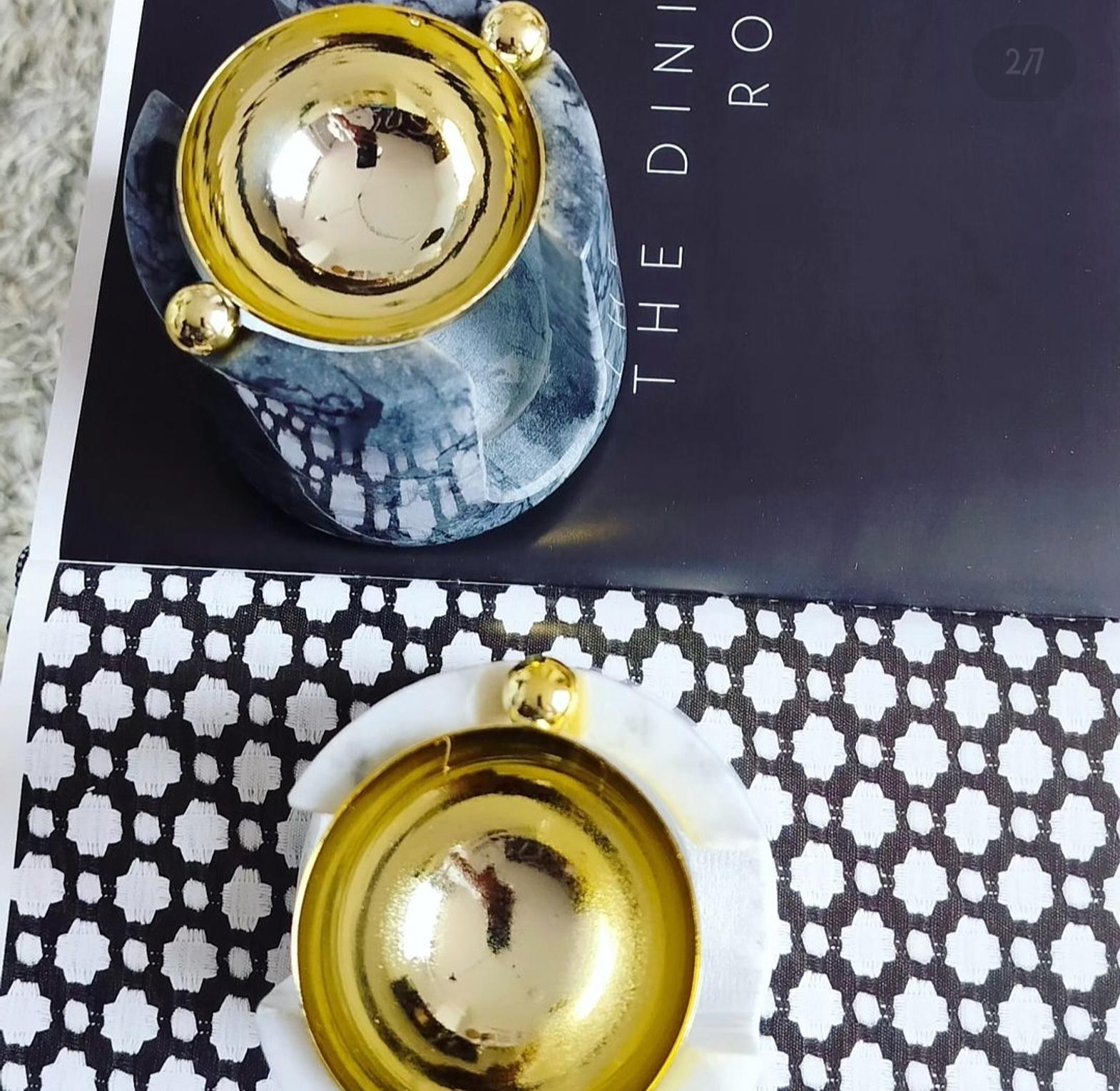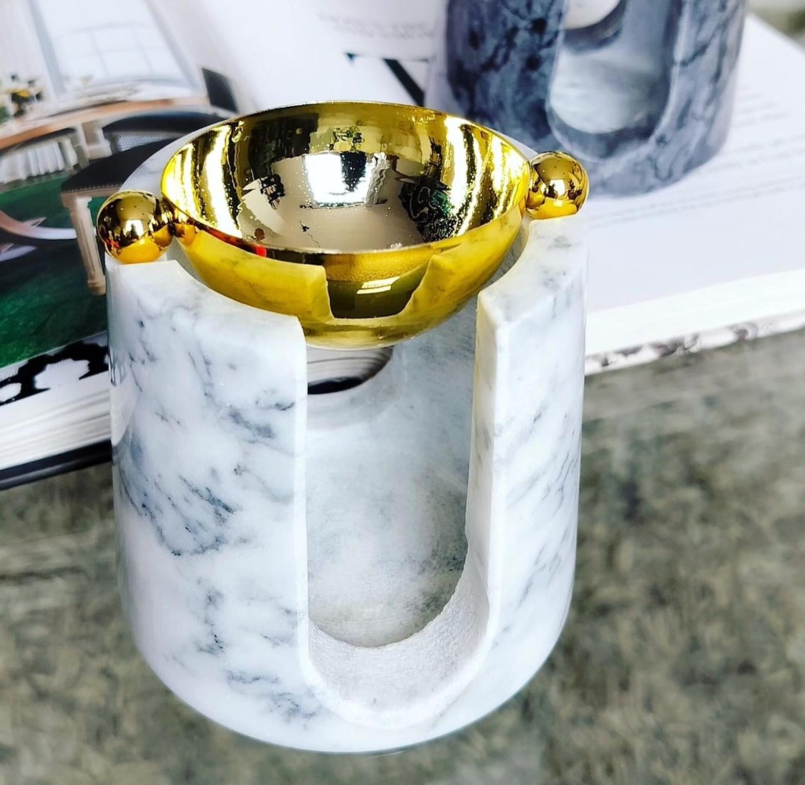 Heavy marble was melts or oil burners. Real marble cylinder with gold coated burner bowl
