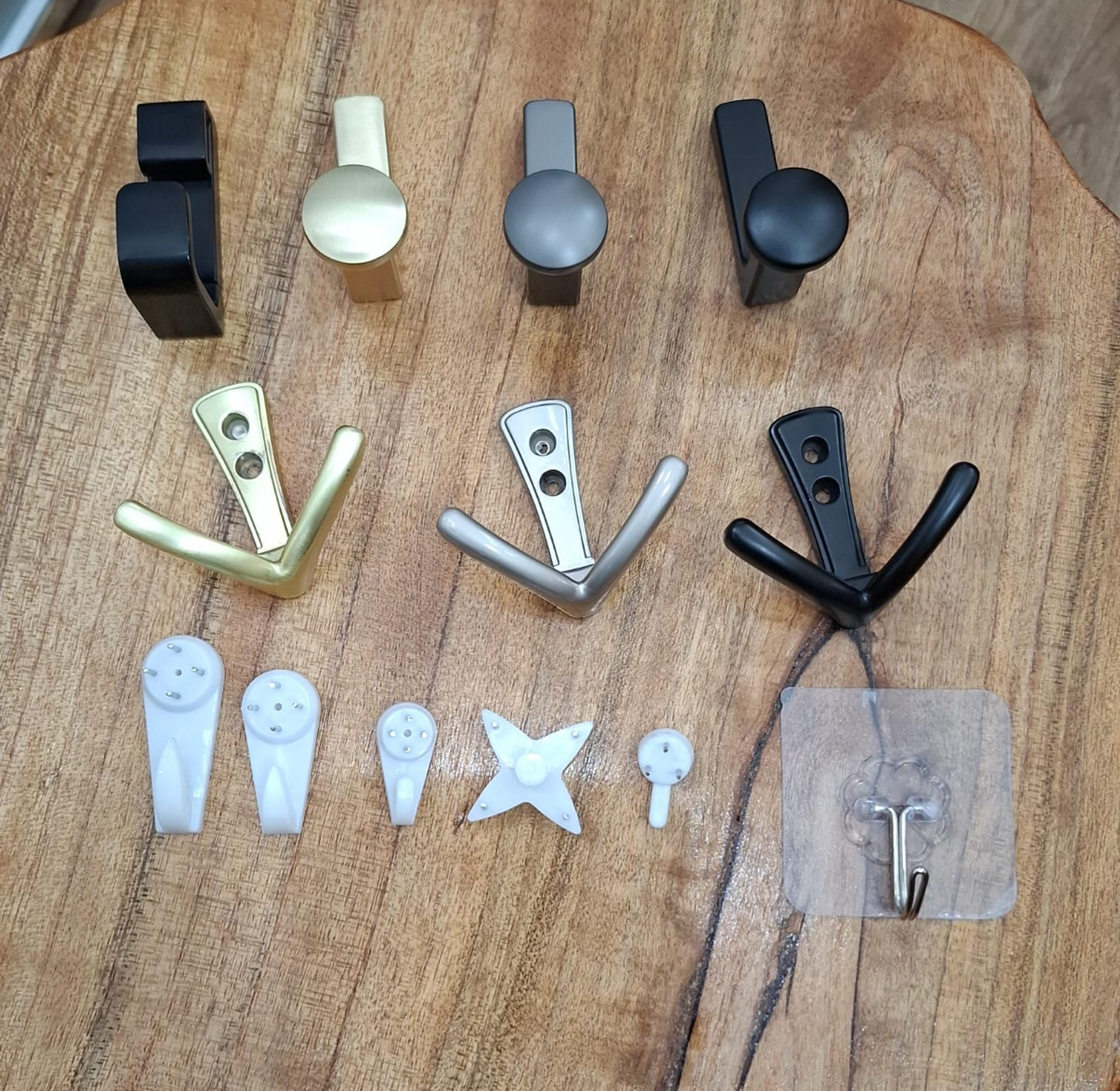 • Available Names:  large white hook, medium white hook, small white hook, extra small white hook, adhesive clear hook, metallic hooks