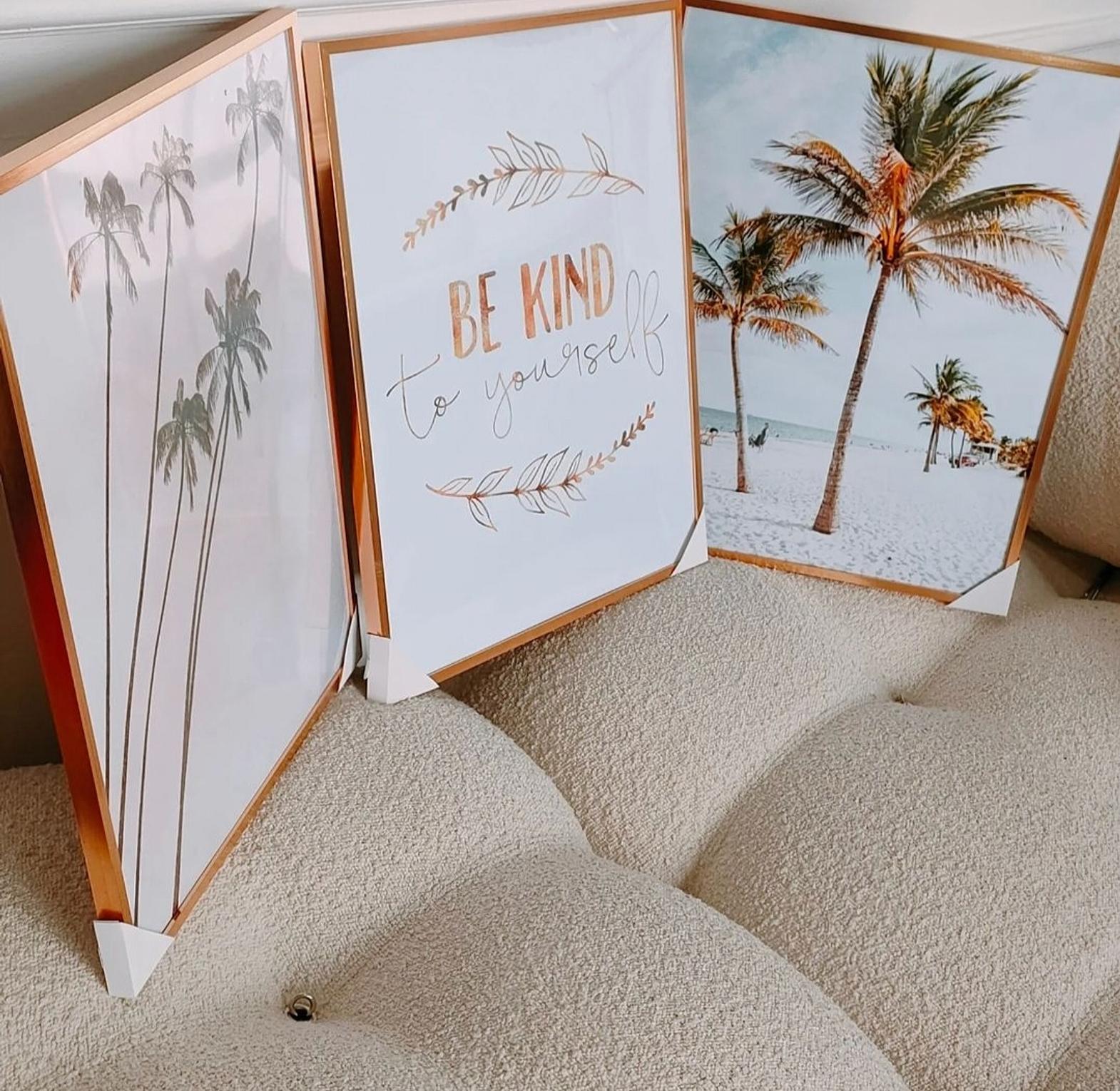 Set of three tropical vibes frames with mounting hooks. A2 size.
