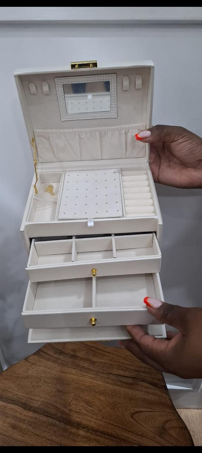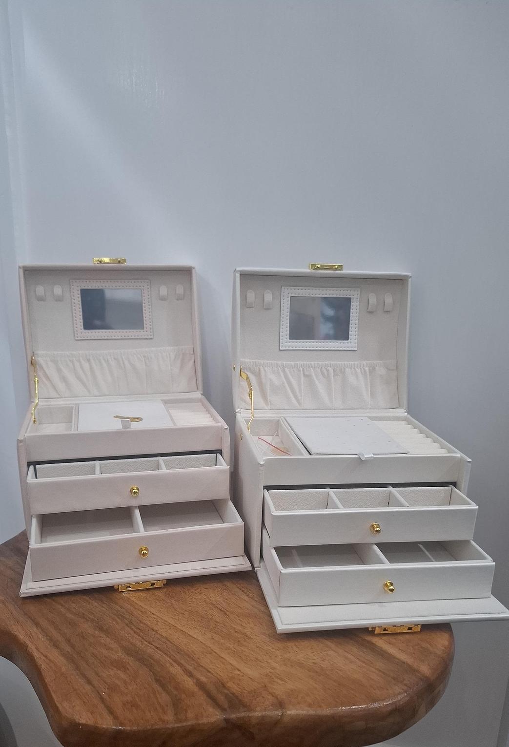 A two drawer jewelry holder with a lock