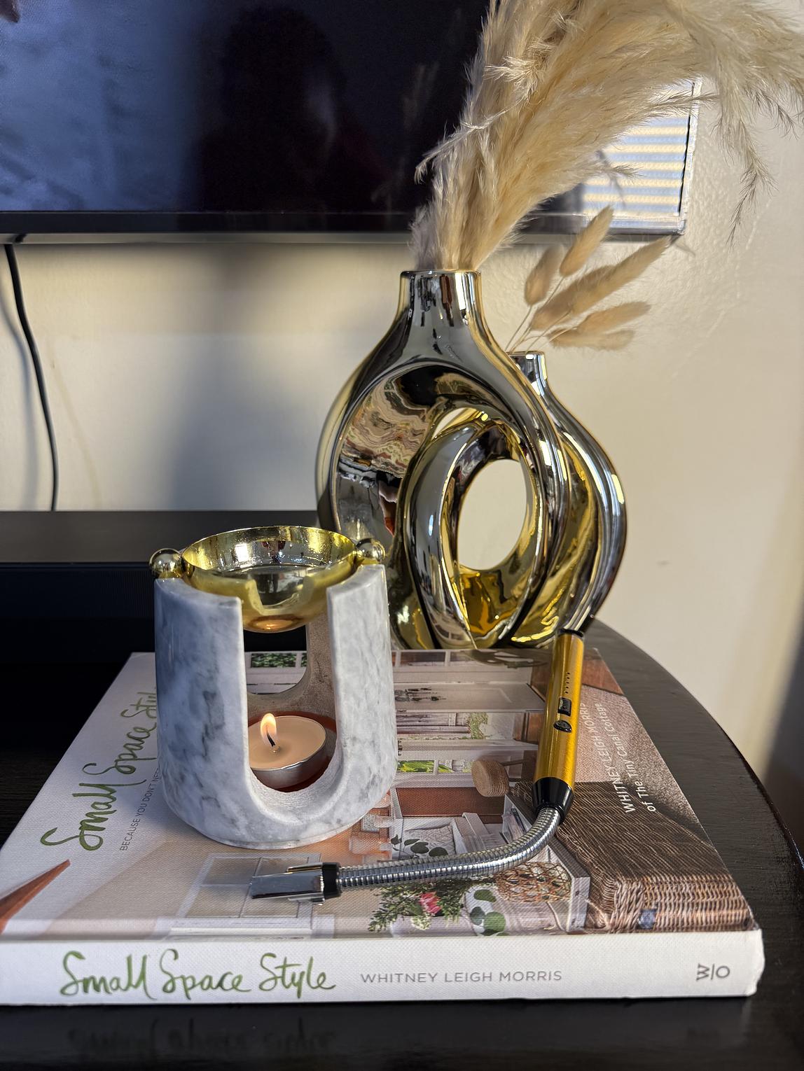 Heavy marble was melts or oil burners. Real marble cylinder with gold coated burner bowl